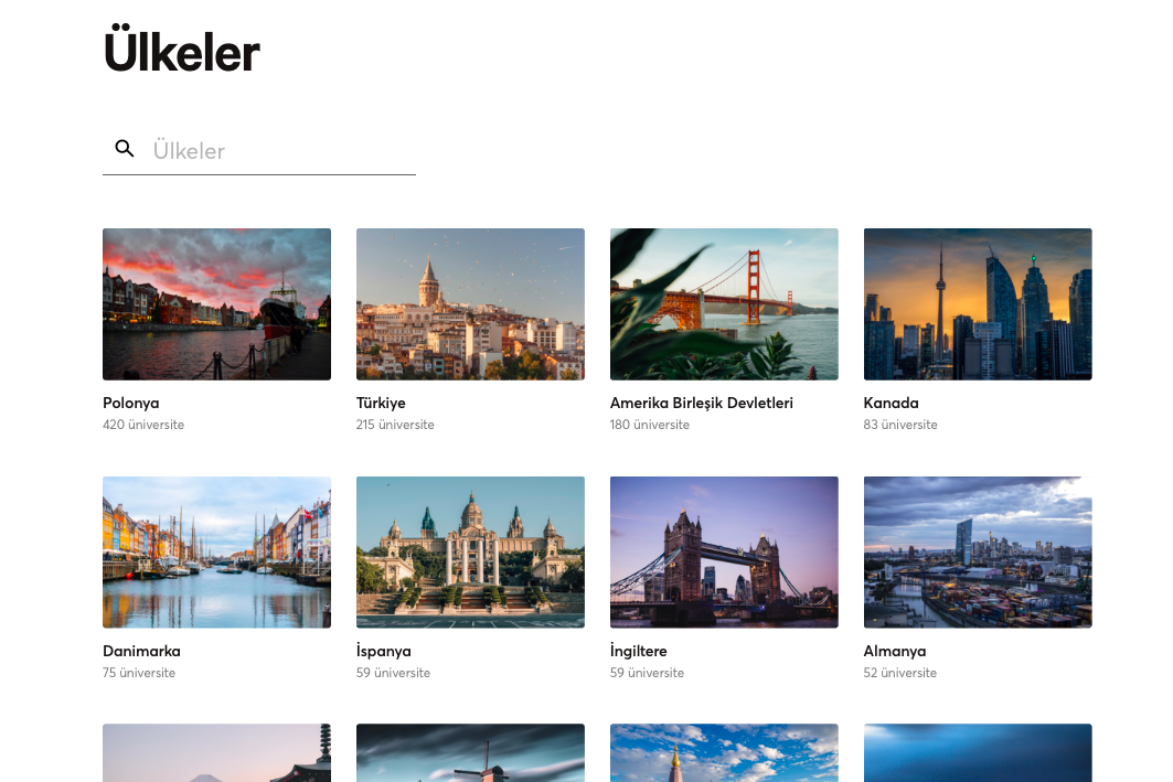 ÜlkelerveŞehirler sayfalarında şehirler ve ülkelerin üniversiteleri hakkında bilgiler edinebilirsiniz
