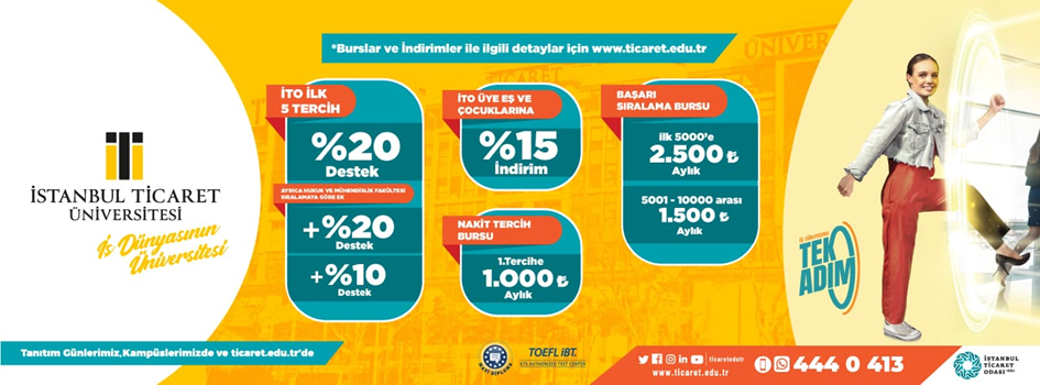 İlk tercihine İstanbul Ticaret Üniversitesi yaz ve aylık 1000tl Nakit Tercih bursu al!