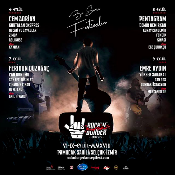 "Rock müzik severlere yazın sonuna doğru güzel bir haberimiz var. 6-9 Eylül tarihleri arasında Rock’N Burger Konsept Festivali’nin ilki düzenleniyor. Cem Adrian, Emre Aydın, Feridun Düzağaç, Can Bonomo, Yüksek Sadakat, Pentagram vb. gibi birçok ünlü sanatçının, müzik grubunun ve dj lerin sahne alacağı festival İzmir'in Selçuk beldesinin Pamucak sahilinde gerçekleşecek. Medya sponsorluğunu Number1’ın üstlendiği; geniş kumsalda, çadır ve kamp alanı, yemek alanı, konser alanı ve alternatif sahnenin bulunacağı festivalde etkinlikler saat 12.00 de başlayıp gecenin ilerleyen saatlerine kadar devam edecek. Sadece konserlerin değil, günün her saatinin dolu dolu geçeceği; atölyeler, yarışmalar, etkinlikler ve after partilerin olacağı festivale katılmak isteyen katılımcılar biletlerini biletix üzerinden hemen alabilirler.