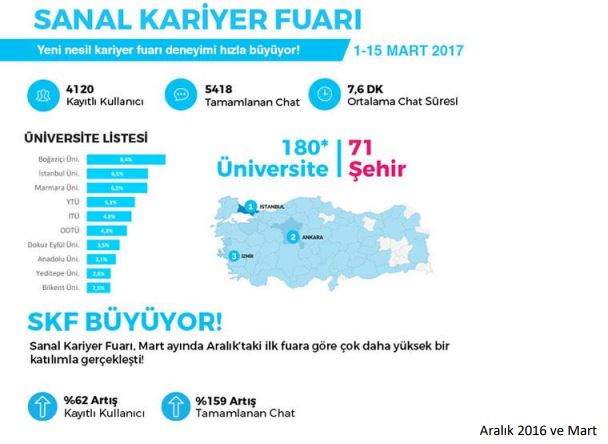 2017 tarihlerinde gerçekleştirilen Sanal Kariyer Fuarlarında, Türkiye’nin en iyi üniversitelerinde