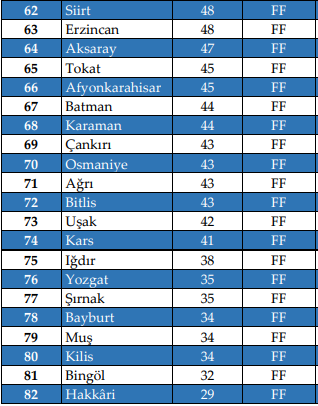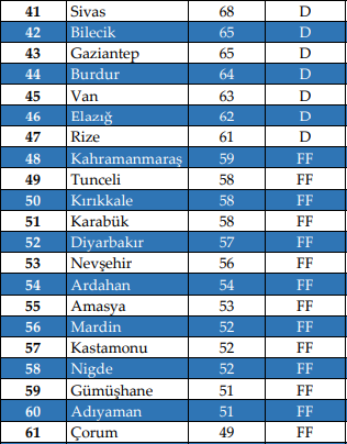 En yüksek ve ciddi memnuniyetsizliğin yaşandığı şehirler sırasıyla Ağrı, Bitlis, Uşak, Kars, Iğdır, Yozgat, Şırnak, Bayburt, Muş, Kilis, BingölveHakkari'dir.