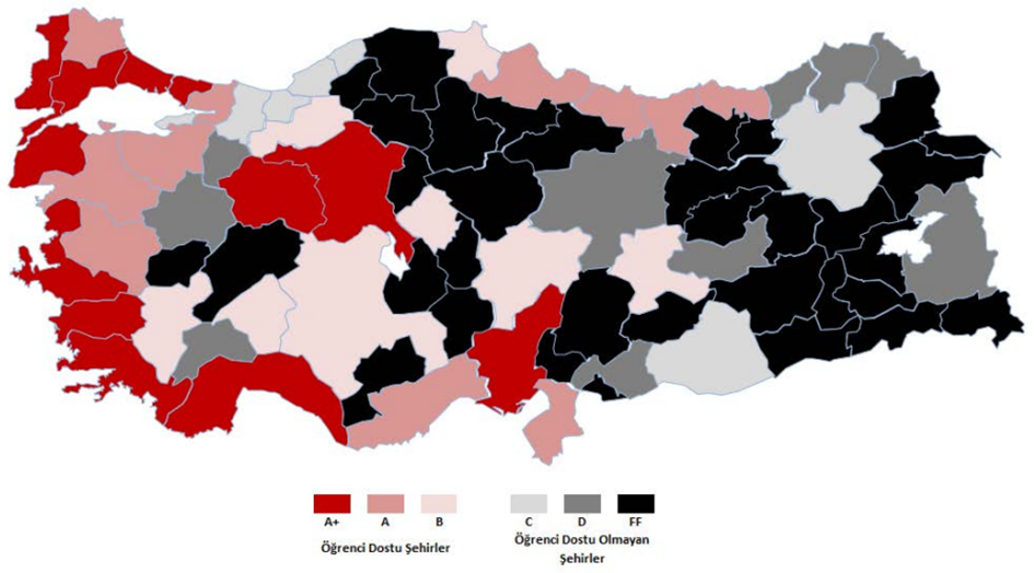 Üniversite Araştırmaları Laboratuvarı ÜniAr2020 yılından sonra pandemi nedeni ile bir yıl ara verdiği araştırmasını 2022 yılı için yayınladı. Bu araştırma çerçevesinde öğrenci dostu şehirleri harita üzerinden de göstererek notlandırmalar hakkında bilgiler verdiler.